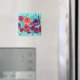 Bleibe mit diesem bunten Blumenmagneten mit schönen Blume auf blauem Hintergrund.