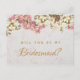 Dieses elegante Blumenangebot "Werden Sie meine Bridesmaid" Postkarte hat einen Marmorhintergrund und rosa-weiße Orchideen auf der oberen Hälfte. Der Titel "Bridesmaid" und die Nachricht auf der Rückseite sind in einem eleganten Kalligraphieskript geschrieben. Alle Texte haben eine goldgelbe Farbe. Das Vintage Bouquet mit rosa-weißen Orchideen aus der Blume stammt aus einer Vintagen Grußkarte von Bertha Maguire (1862-1910), die jetzt im öffentlichen Bereich erhältlich ist.