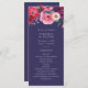 Blumenmarsch-Hochzeitsprogramm. Begleiten Sie Ihren Gast durch jeden Augenblick Ihrer Hochzeitsfeier mit diesem wunderschön gestalteten Programm, das mit einem reichen marineblau-Hintergrund geschmückt ist, der mit hellen, juwelenfarbenen Blumen, wie Rose, Anemonen, Kosmos, Gänseblümchen und Delphinium mit üppiger Vegetation, geschmückt ist. Dieses Programm ist perfekt für jede Jahreszeit und verleiht gemütlichen Herbst- und Winterhochzeiten eine romantische Touch und lädt zu Frühlings- oder Sommergarten-Feiern ein. Passen Sie den Text an, um Ihren besonderen Tag zu reflektieren und sicherzustellen, dass jedes Detail so elegant und unvergesslich ist wie Ihre Hochzeit selbst. HINWEIS: Der Text ist Elfenbein auf einem marineblauen Hintergrund.