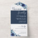 Personalisierte deine eigene Blumenmarineblau Elegant Wedding All in One Einladung.
