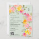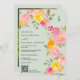 Feiern Sie Ihre Hochzeit mit unserem bezaubernden Blumenkode Qr und Foto Einladung. Dieses wunderschön gestaltete Interieur besticht durch eine reizvolle Auswahl an handbemalten Blume in lebhaften Rosa-, Orange- und Gelbtönen, die durch üppiges grünes Blattwerk hervorgehoben werden. Der elegante Blumenrahmen umrahmt den Text perfekt und schafft einen harmonischen und romantischen Look. Ein modernes Monogramm in der oberen Ecke trägt zu einer persönlichen Touch bei, und ein moderner QR-Code unten rechts sorgt für bequeme UAWG auf weichem, editierbarem, lichtdurchlässigem, grünen Hintergrund. Zusätzlich gibt es eine individuell anpassbare Fotovorlage auf der Rückseite, die Ihnen erlaubt, ein geschätztes Foto des Paares hinzuzufügen, sodass diese Einladung nicht nur schön, sondern auch persönlich und unvergesslich.