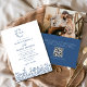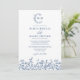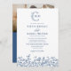 Blumenmonogramm Foto QR Code Navy Blue Wedding Einladung