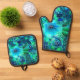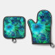 Blumenmuster Abstraktes Muster Blau Grüne Aquamari Ofenhandschuh & Topflappen-Set