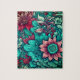 Blumenmuster, Aqua, Aquamarin, Türkis und Grau Puzzle