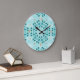 Blumenmuster, Aquamarin blau Große Wanduhr