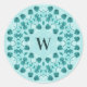 Blumenmuster, Aquamarin Blue Initial Runder Aufkleber