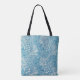 Dieses hübsche, blau-weiße Blumenmuster ist auf beiden Seiten des Totensacks zu sehen, mit einem dekorativen Gittermuster, das das Blumendesign auf einer Seite überlagert.