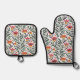 Blumenmuster der Folklorekunst Ofenhandschuh & Topflappen-Set