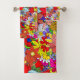 Blumenmuster Gelbblau Lila-Grün-Rotes Badehandtuch Set
