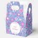 Moderne, rosa und weiße botanische Blume auf einem halbblauen Hintergrund für ein frisches Sommergefühl. Eine wunderschöne, koordinierende Gefälligkeitsbox, um Ihrem Party zu entsprechen. Sie können den Text ändern, um Ihre Feier zu Anzug.