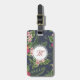 Schönes Blumenmuster des Hibiskus auf dunklem Hintergrund. Hoch entwickelter und weiblicher Gepäckanhänger mit Monogramm in weiße runde Form. Sie kann Hintergrundfarbe und Text (back) (Schriftart, Farbe, Größe und Position) indem Sie den besonders anfertigen Knopf leicht ändern anklicken. Zusammenpassende Hüllen, Abdeckungen, Kissen und mehr…