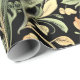 Blumenmuster im viktorianischen Stil mit gelben und gedämpften orangefarbenen Blüten mit grünem Blattwerk vor einem scharfen schwarzen Hintergrund.