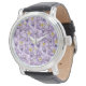 Blumenmuster in Wasserfarbe mit violetten Stiefmüt Armbanduhr