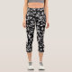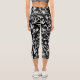 Blumenmuster in Weiß auf Schwarz Capri Leggings