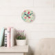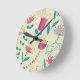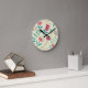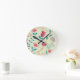 Blumenmuster mit Cartoonkatzen Runde Wanduhr