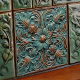 Verzieren Sie Ihren Raum mit dem zeitlosen Charme unserer Viktorianischen Keramik Kachel, meisterlich gefertigt, um eine Touch von Eleganz und historischer Schönheit in jedem Zimmer zu bringen. Die Kachel zeigt ein atemberaubendes Imitat mit Blumenmotiv, prächtig in tiefen indigoblauen Farbtönen und mit Kupfertönen und aquamariner Patina. Jede Blume und jeder Swirl ist aufwändig detailliert und bietet ein taktiles Erlebnis sowie ein visuelles Fest. Die Farben harmonieren mit dem Indigo, das eine edle Kulisse für die metallischen Kupfertönen bietet, die die Textur und Tiefe des Designs hervorheben. Diese Keramik-Kachel eignet sich hervorragend, um einen edlen und antiken ästhetischen Touch zu Ihrem Backsplash, Bad oder als eigenständiges Dekorationsstück hinzuzufügen.