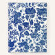 Das ist ein Vintages Blumenmuster in blauer Wasserfarbe auf weißem Hintergrund.