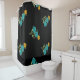 Blumenmuster Türkis Korallengrün auf schwarz Duschvorhang