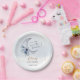 Watercolor Blue Floral Wir sind über dem Mond Baby Dusche Papier Teller.