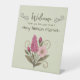 Für Floristen und kreative Botaniker ist dieses elegante Podestschild eine elegante Ergänzung für Ihren Arbeitsplatz oder Laden. Mit zarten Blumendetails und einem sauberen, modernen Design ist es perfekt, um Kunden willkommen zu heißen.