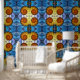 Blumenorange Gelb Blau Abstrakte Kunst Tapete