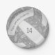 Diese hübschen Volleyball-Party-Teller zeigen das realistische Bild eines grauen und weißen Volleyballs, der ein doodle Muster aus Paislien, Blume und Federn in Weiß aufweist und die grauen Bezüge des Volleyballs bedeckt - mit ihren Festdetails personalisieren - von katz_d_zynes