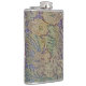 Diese grafische Kunst, von Blumendesign, in einer Texturierung, Muster-hervorgehoben, in den Farben Royal-blue, lila, orange, Korallen, grün, taupe und schwarz.