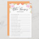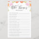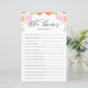 Wer kennt Mama am besten? Fügen Sie dieses lustige und spielerische Spiel zu Ihrer Veranstaltung hinzu. Es zeigt Aquarellbilder von Pfirsichen, rosa Blume mit einem Akzent im Grünen. Sie können die Karte personalisieren, indem Sie zurückliegende Texte hinzufügen. Diese pastellfarbene botanische Gästekarte ist ideal für Frühjahr- und Sommerduschen.