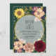 Elegante, moderne, kühne, boho, botanische, florale Bordeaux, pfirsichrosa und smaragdgrüne whimsical Wildblumen Hochzeitseinladung mit trendiger Kalligraphie-Skript.