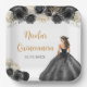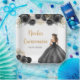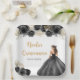 Dieser Quinceanera-Teller besticht durch eine schöne Prinzessin in einem schwarzen Ball mit Blumenarrangements. Das ist perfekt für ein süßes Quinceanera Party.