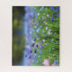 Ein Blumenfeld in tiefblauen und blassblauen Farbtönen, lila, Lavendel und Rosa mit blassgrünen Blätter.