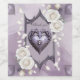 Blumenrahmen mit Herz und weißen Rosen - romantisch gotisch. Weiße Rosen und verstreute Blütenblätter schmücken den Rahmen und schaffen eine romantische und zarte Atmosphäre. Am unteren Ende des Raumes sorgt ein dekoratives Herz mit feinen Details für eine Touch Eleganz. Die Farbpalette wird von Weiß-, lila- und Grautönen dominiert.