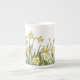 Bläserner Rand von handgezogenen, gelbblüten Narzissen auf der Tasse der Knochen-China