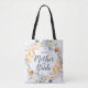 Maßgeschneiderte Hochzeitstaschen mit Brautparty personalisiert mit dem Namen der Braut oder anderen Sondertext. Dieses elegante feminine Design hat einen Blumenkranz in Aquarelltönen mit staubigen Blüten in blau-grau und pachelgelb. Verwenden Sie die Designtools, um jedes Monogramm individuell zu gestalten, eine beliebige Hintergrundfarbe zu wählen, Schriftart und Farben zu bearbeiten und Fotos hinzuzufügen, um eine Art Tasche für Ihre Hochzeitsfeiergeschenke zu erstellen.