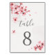 Moderne Tischnummern mit Blumen, Blütenfarben, Blütenkirschblüten und moderne Kalligraphie auf handgearbeiteter Papierstruktur.