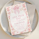 Blumenrosa Extravagante Liebe Shack Baby Dusche Einladung Sweet rosa Bogen und winzige rosa Blumenmuster Liebe Shack Baby Babydusche Einladung für kleine Mädchen auch mit einem ovalen weißen Rahmen mit rosa Rahmen.