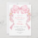 Blumenrosa Ribbon Arch Bow Coquette Bridal Dusche Einladung. Schöne minimalistisch rosa Bugbrause mit handgemalten Aquarellbogen und Farbband und mit rosa und grauem Blume gewölbten Bogen. Sie können die Formulierung, den Stil, die Farbe und die Größe des Schriftartes vor und hinter der Einladung personalisieren. Bitte kontaktieren Sie mich für passende Artikel.