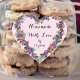 Diese hübsche rosa hausgemachte Liebe-Aufkleber weist eine herzförmige Krananlage aus Vintagen Lavendel- und rosa Blume auf, in der Mitte befindet sich eine niedliche Kalligraphie-Schrift. Ideal, um Ihre Valentiner Backwaren anzuziehen, die Sie mit Ihren Freunden teilen oder am Valentinstag in ein Klassenzimmer schicken.