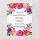 Eine elegante Einladungskarte für eine 50. Geburtstagsparty (oder jedes Alter). Mit zeitgenössischem Rosa, lila und in Rose goldfarbenen Blume, Blumen als Dekoration. Ein schick weißer Hintergrund. Der Name wird mit einem schwarzen handgeschriebenen Stilskript geschrieben.