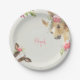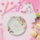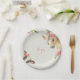 Pink Pony und Kuh rosa Blumenblütendusche Teller Papier. Schrift Name. Einfach. Bunt.