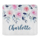 Elegante rosa Rosen und blaue Blätter Aquarellfarben mit anpassbarem Text für einen Namen oder ein Monogramm auf einer Schneideplatte