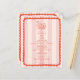 Line Art Illustration von Blume über rosa gestreiften Hintergrund. Roter Text und handgezeichneter Rahmen.