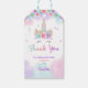 Blumenrosa und Lila Einhornprägemarken Geschenkanhänger