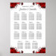 Blumenrot & weiß 15 Hochzeitstische Sitzplan Poster