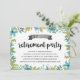Diese hübsche Ruhestandsabendesseneinladung kennzeichnet eine schöne blaue und grüne Blumenwreathgrenze, hübsche eine Bürstenskriptkalligraphie und eine rustikale Chictafelfahne.