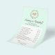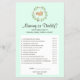 Dieses Floral Sleeping Deer on Green Baby Shower Mummy oder Daddy Game ist ideal für eine Waldbrunnen-Babydusche oder ein Berieselungsspiel für einen Jungen oder ein Mädchen. Das Design ist mit einem schlafenden Hirsch in einem Blumenkranz mit einfacher Kalligrafie auf einem hellgrünen Hintergrund ausgestattet.