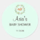 Dieser Blumenschläfer auf dem grünen Baby-Umschlag Aufkleber ist perfekt für eine Woodland-Babydusche für Jungen oder Mädchen. Das Design ist mit einem schlafenden Hirsch in einem Blumenkranz mit einfacher Kalligraphie auf einem hellgrünen Hintergrund ausgestattet. Personalisieren Sie es mit dem Namen der künftigen Mutter und dem Datum.