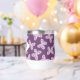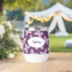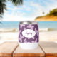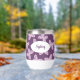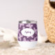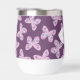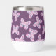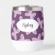 Personalisierte Blütenschmetterling Muster Wine Tumbler. Schmetterlingsdesign in Rosa, lila und Blau. Auf einem dunklen lila Hintergrund angezeigt, aber Sie können Ihre eigene Hintergrundfarbe bearbeiten. Personalisieren Sie Ihre Daten mit einem Namen oder einem anderen Text. © Kimbellished, LLC