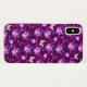 Hübsche Blume Schmetterlinge und Herzen in lila und rosa gemusterten Telefongehäuse auf einem dunklen lila Hintergrund . Einzigartiges Muster von Sarah Trett für www.mylittleeden.com