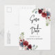 Blumenschrift Burgundy Wedding speichern das Datum Ankündigungspostkarte